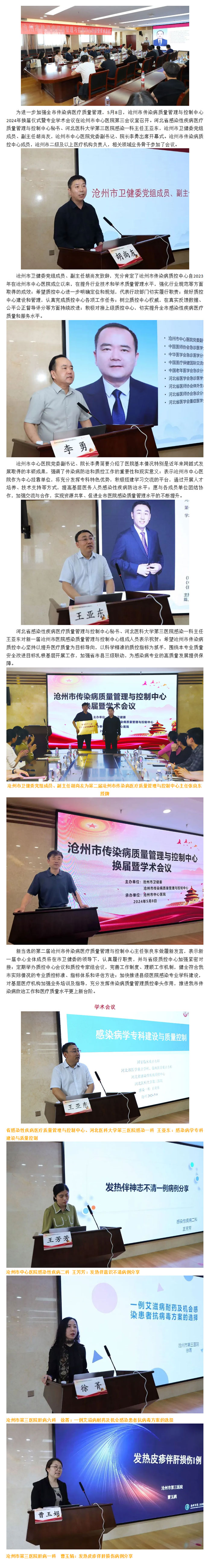 滄州市傳染病質量管理與控制中心2024年換屆儀式暨專業(yè)學術會議在滄州市中心醫(yī)院舉辦