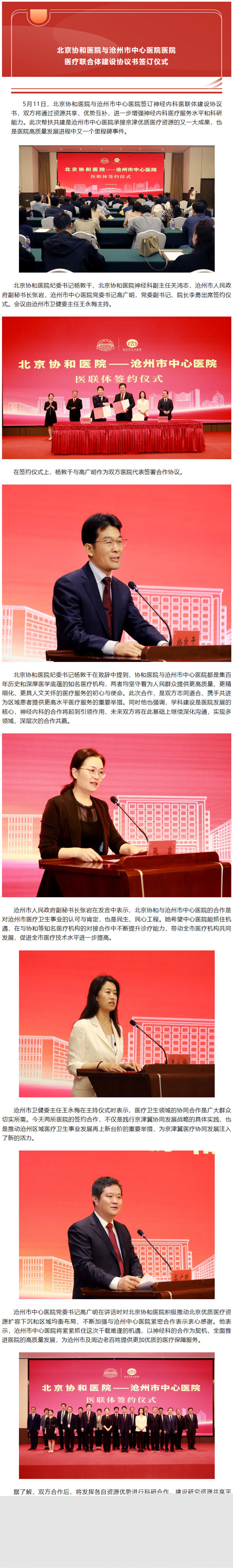北京協(xié)和醫(yī)院與滄州市中心醫(yī)院簽訂醫(yī)療聯(lián)合體建設(shè)協(xié)議書