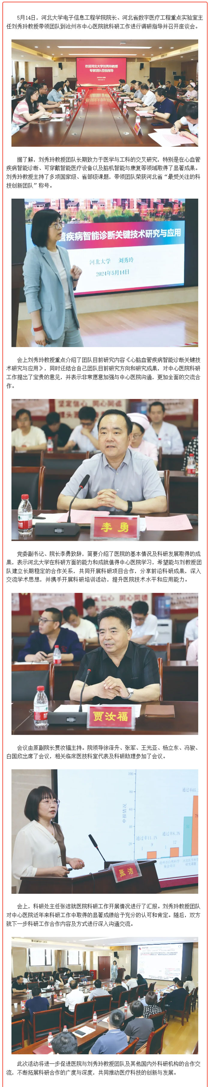 河北大學(xué)電子信息工程學(xué)院院長(zhǎng)劉秀玲教授團(tuán)隊(duì)到滄州市中心醫(yī)院調(diào)研指導(dǎo)